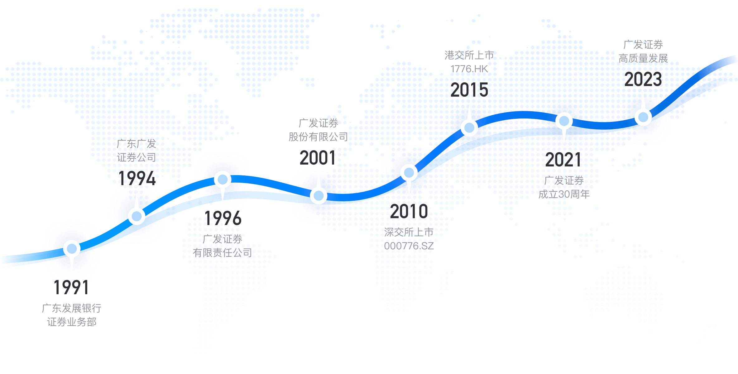 - 公司简介 -广发证券股份有限公司(以下简称“公司”)成立于1991年,是国内首批综合类证券公司,先后于2010年和2015年在深圳证券交易所及香港联合交易所主板上市(股票代码:000776.SZ,1776.HK)。30多年来,公司 ...