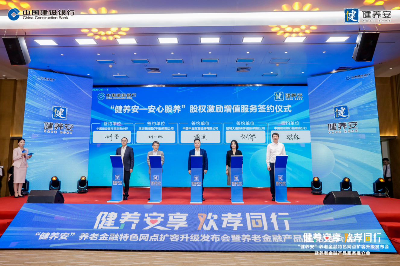深圳新闻网2025年5月9日讯(记者 汤莎 通讯员 闫曦匀 赵轶)5月8日,中国建设银行在福建省福州市举办“健养安”养老金融特色网点扩容升级发布会暨养老金融产品服务推介会,并集中揭牌全国第二批“健养安”养老金融特色网点。深圳第二批“健养安”养老金融特色网点在八卦岭支行同步揭牌。 建设银行副行长纪志宏出席活动并致辞。建设银行深圳市分行资深副经理刘星,深圳赛陆医疗科技有限公司联合创始人、CTO刘二凯参加“健养安-安心股养”股权激励增值服务现场签约。
